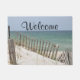Pretty sand dunes with grass and weathered fence at the beach. Text reads "Welcome" but feel free to add, change, or remove if you like.