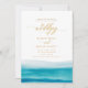 Ocean Watercolor Gold Script Beach Wedding Invitation