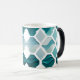 Sip your favorite drink in style with this 15 oz Color Morphing Mug featuring a soothing geometric wave pattern in teal and aqua tones. The magic happens when you pour in a hot beverage—watch as the hidden design emerges, bringing a modern, ocean-inspired vibe to your morning routine. A perfect gift for coffee lovers, tea drinkers, and anyone who enjoys unique, artistic drinkware.