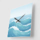 Minimalist ocean-inspired wall clock with blue and white watercolor waves. Perfect for beach homes and relaxing interiors