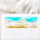Return address labels with teal and blue ocean waves, starfish and sandy beach. Cute for anyone or to add onto beach themed wedding invitations.
