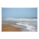 Ocean waves crashing on the beach by lighthouse poster