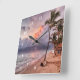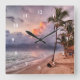 Ocean Waves Sandy Beach Sunset Square Wall Clock