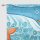 Nautical ocean or sea waves and sandy beach starfish blue and orange blackout curtains.