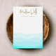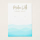 Handwritten script font on wave pattern in subtle tones of aqua blue and green Elegant earring display holder with two printed hole "markers" - these are not real holes.