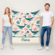 This stunning personalized blanket features hand-illustrated humpback whales, graceful jellyfish, and intricate coral reefs in a beautiful palette of teal, coral pink, and sandy beige set against a warm cream background.