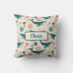 This stunning personalized throw pillow features hand-illustrated humpback whales, graceful jellyfish, and intricate coral reefs in a beautiful palette of teal, coral pink, and sandy beige set against a warm cream background.