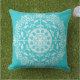 This white mandala sits on a turquoise background. The colors are very calming and peaceful. Part of the Gwias Mandala Collection.