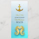 Oceanic Beach Themed Aqua Blue Wedding Menu Card with gold seahorses and anchors.