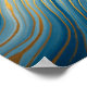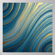 An abstract, fluid painting dominated by rich, deep, and luminous shades of blue, ranging from dark sapphire to lighter cerulean. The colors are applied in concentric and wavy stripes, creating a sense of dynamic, circular motion, reminiscent of water, waves, or agate stone. Striking, meandering lines of metallic gold weave across the surface, following the blue waves and providing a dramatic, luxurious contrast. The overall impression is one of elegant movement, depth, and richness.