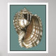 One of the finest ocean's jewel is in this image. Find this large Conch seashell in this framed piece of modern art. This large Conch seashell image has a teal background and sepia and white shell. Get relaxed with this great piece of natural artwork.