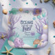 Make waves with this whimsical “Oceans of Fun” birthday design — perfect for a magical mermaid-themed party! Featuring a sweet, dark complexioned mermaid with lavender hair, surrounded by colorful sea life, coral, and underwater treasures, this design sets the scene for an unforgettable celebration under the sea. The fun pastel palette and bubbly underwater setting make it ideal for a little girl's ocean-inspired birthday. Fully customizable with your party details and age, this charming paper plate is sure to delight your guests from the very first splash!