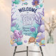 Make waves with this whimsical “Oceans of Fun” birthday invitation — perfect for a magical mermaid-themed party! Featuring a sweet, dark complexioned mermaid with lavender hair, surrounded by colorful sea life, coral, and underwater treasures, this design sets the scene for an unforgettable celebration under the sea. The fun pastel palette and bubbly underwater setting make it ideal for a little girl's ocean-inspired birthday. Fully customizable with your party details and honoree's age, this charming 'Welcome' sign is sure to delight your guests from the very first splash!