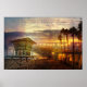 With a lifeguard tower and the Oceanside Wooden Pier at sunset, this digital composite has grunge applied and the words "Oceanside California" at the top.