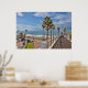 Oceanside California. View of the beach with tall palm trees, the wooden pier, and the Pacific Ocean.
