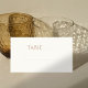 Chic and minimalist. These table escort place cards feature a contemporary ochre font, against a creamy ivory background. The front design is repeated at the back for visibility across the table. Designed to coordinate with other items in the collection.