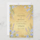 This design features a warm, golden ochre backdrop that evokes a sun-drenched field. Delicate sprigs of purple lavender and soft blue flax blossoms are layered with wispy dried grasses for a natural look. The palette of mustard yellow and periwinkle creates a serene and rustic aesthetic, perfect for an outdoor countryside ceremony.