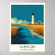 Illuminate your space with this iconic vintage travel poster of Ocracoke, North Carolina. Featuring its famous lighthouse standing proudly by a marshy inlet leading to the beach, it captures the remote beauty and serene charm of this Outer Banks island. Perfect for lighthouse enthusiasts, island adventurers, or a striking piece of coastal NC art.