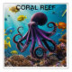 This image showcases a mesmerizing underwater scene where a colorful octopus, with vividly detailed tentacles, harmonizes with a variety of vibrant tropical fish. The intricate patterns and bold colors highlight the beauty of marine biodiversity.