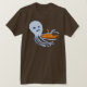 Look out for that giant octopus!! On this graphic t-shirt, a big blue octopus attacks an orange submarine.