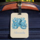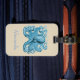 The octopus in in a modern blue color on a sand background echoing the ocean.