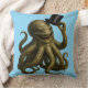 Octopus in top hat, whimsical, nautical art print throw pillow