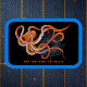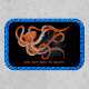 An orange octopus against a backdrop of black. Octopus tentacles in and around bubbles and a blue mandala
