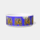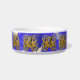 This is a heavy, durable bowl decorated with Tibbies of many colors, the perfect size for hungry/thirsty Tibs. The design is interesting and printing clear.
