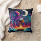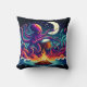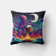 Octopus Playing Drum by Campfire Under Moonlight Throw Pillow