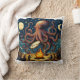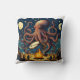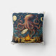 Octopus Playing Drum by Campfire Under Stars Throw Pillow