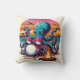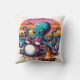 Octopus Playing Drums by a Campfire at Sunset Throw Pillow