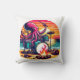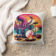Octopus Playing Drums by the Beach at Sunset Throw Pillow