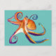 A vibrant colorful orange sealife octopus illustration original art by artist Sacha Grossel. Watercolor occtopus sea creature design. Under the sea theme. Aquatic ocean art.