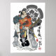 Ukiyo-e of Oda Nobunaga (織田信長) by Utagawa Kuniyoshi, master of ukiyo-e style of Japanese woodblock prints, restored by Takeda Art. Depicting Nobunaga tearing down a tent curtain decorated with the crest of his treacerous vassal Akechi Mitsuhide. Behind is the kamon of Oda clan, with calligraphy kanji of Oda Nobunaga, signature and seal of Kuniyoshi. Great vintage japanese samurai design for Japan or samurai fan.