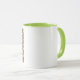 I was thrilled this came out so well. It is a very attractive mug with the colored handle and interior. Being able to personalize it was easy! It was designed for an end of the year thank you gift to the special recipient. perfect. Text lines up perfectly parallel to the top edge of the mug.
