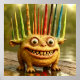 With his huge grin, wide eyes, and colorful crown of spikes, he’s weird, funny, and full of chaotic charm.
