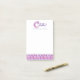 Odette personalized O name meaning or message post it notes. Initial O monogram name and meaning in purple, pink and white. Ideal for a personalized gift for a girl who has a name that starts with the letter O. This example reads Odette Wealthy, rich in grace and kindness or you can customize the text with your own name or message if required. Makes a unique office celebration gift. © Decorative letter O flowers with hearts hand drawn and pattern uniquely created by Sarah Trett for www.mylittleeden.com
