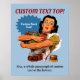 Woman wearing a ruffled apron holding glass jars of vegetables. Custom background color. Top and bottom custom text. Customizable or removable burst bubble with custom text. Enjoy this vintage poster designed from scratch with crisp colors at hi resolution.