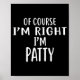 Of Course I'm Right, I'm Patty Novelty Humor Poster