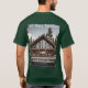 This is an Off Duty Teacher Cabin T-Shirt. The cabin design was created with generative art. The artwork features a blue sky, trees and a cabin with a pool. The color of the t-shirt shown is Forest. Off Duty Teacher is on the top of the image in silver text. You can click the Personalize button to change the text. The t-shirt is made from 100% cotton.