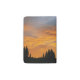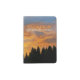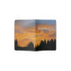 A glorious solar display in a blaze of golden yellows and orange on an attractive passport cover. The text on the reads: Vacation off into the sunset. You can customize the text in our easy to use template. Upload your own sunset photo, or use ours. As colorful as any sunset, the dawn broke overcast but was quickly lit up with the bright rays of the sun in a meadow beside a spruce-fir forest in the Bear River Range in southern Idaho. The trees silhouetted against the sky are Engelmann spruce (Picea engelmannii) and Douglas-fir (Pseudotsuga menziesii). The photograph is Sunrise in the Bear River Range © Sandy Long, all rights reserved. This and other nature photography is on many other attractive items in my SandyLongPhotography shop.