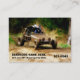 A very dirty, mud covered dune buggy style all terrain vehicle gets some air on a tabletop while racing on a 4x4 dirt track. Vivid colors and zoom effect captures the speed and intensity, and getting your motorsport related business the attention it deserves. Customize both sides with your own contact information.
