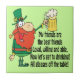 This St. Patrick's day design features a green leprechaun holding a mug of beer and the saying "My friends are the best friends, loyal willing and able. Now let's get to drinking! All glasses off the table!"