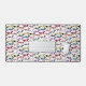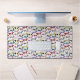 This desk mat has a Off to the Horse Races Jockey Silk Pattern Design made from horse silhouette racing in 13 different jockey silk colors combos on a white background. Make the pattern larger or smaller. Personalize with your initial.