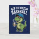 Celebrate a baseball fan with this charming "Off to Watch Baseball" dinosaur card. The design features an adorable T-Rex in full baseball mode—wearing a tiny cap, claws gripping a bat, ready for opening day. This playful mashup of prehistoric creatures and America's pastime has delighted fans for decades, from 1988 Topps Dinosaurs Attack! cards to Wild Card's recent Prehistoric baseball series featuring Raptors, Stegosaurus, and T-Rex on the diamond . The concept even echoes the beloved "Dinosaurs On My Street" children's book where prehistoric creatures roam modern neighborhoods . This card speaks directly to the baseball enthusiast, the dinosaur lover, the sports fan, or anyone who appreciates quirky, nostalgic animal art. It makes a wonderful gift for teammates, coaches, baseball fans, or that special person who loves both America's pastime and prehistoric creatures. The sweet, hand-drawn style artwork blends vintage charm, sporty humor, and adorable characters. Perfect for baseball-themed birthdays, opening day celebrations, or just because, this card adds a dose of prehistoric charm to any occasion. The interior is left blank for your personal message. Printed on high-quality cardstock with a coordinating envelope, it is ready to mail. Find your favorite design and make your favorite baseball fan and dinosaur lover smile on their big day.