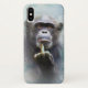 Funny, offensive iPhone X case featuring a chimpanzee with attitude giving the middle finger, flipping the bird. Original artwork KL Stock.