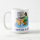 Business gift. Promotional mug for businesses that are involved in office and business services. Asian Female at computer. Personalise with your choice of company details.
