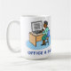 Promotional mug for businesses that are involved in office and business services. Black Female at computer. Personalise with your choice of company details. Business run by a black female.