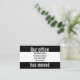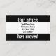 This black and white enclosure card has three fields. Together the black fields say ' Our office has moved'. Use the white field to customize your postcard with your company's name, address, and phone number.