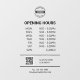 Simple business opening hours to personalize. Add your own text, business logo, QR code and contact info.